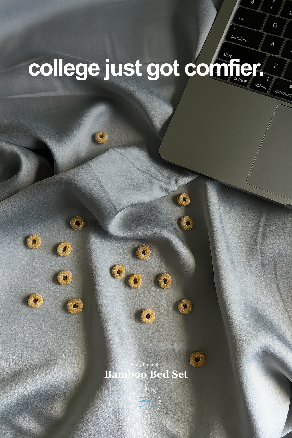 The Bedly Comfort Products Bamboo Twin XL Sheet Set is the ultimate dorm room essential, designed to give college students the softest, coolest, and most comfortable sleep possible. Made from 100% organic bamboo-derived viscose, these breathable, moisture-wicking, and temperature-regulating sheets keep you cool on hot dorm nights and cozy in winter. The deep-pocket fitted sheet stays secure on Twin XL dorm mattresses—even on thick mattress toppers—while double-stitched seams ensure durability that lasts all semester and beyond. Naturally hypoallergenic and eco-friendly, these ultra-soft sheets are perfect for students with sensitive skin and for parents who want a high-quality, sustainable, and long-lasting bedding solution for their college kid. And as a special touch, each top sheet includes a hidden message stitched into the folded hem—a small surprise designed to inspire, comfort, or simply make them smile.